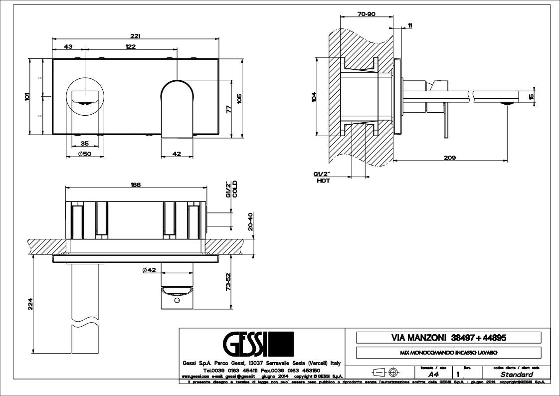 Смеситель для раковины Gessi Emporio Via manzoni 44895.149 Finox Brushed Nickel