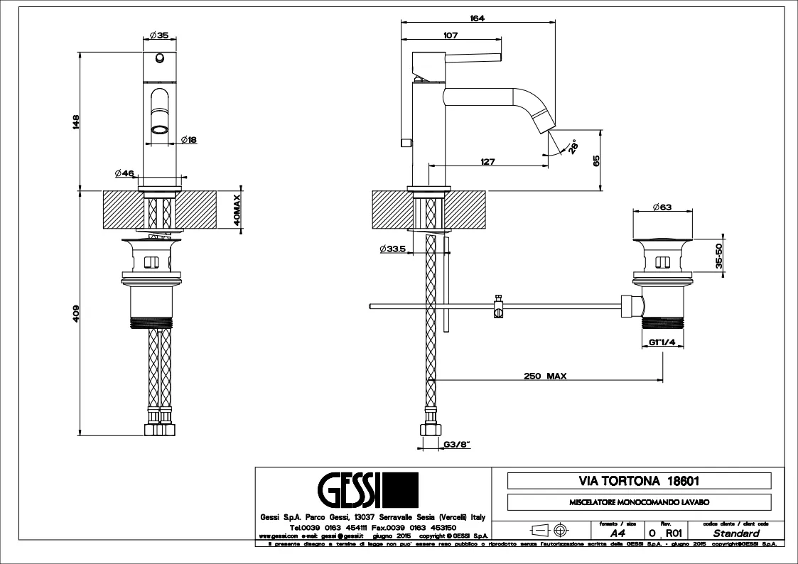 Смеситель для раковины Gessi Emporio Via tortona 18601.031 Chrome