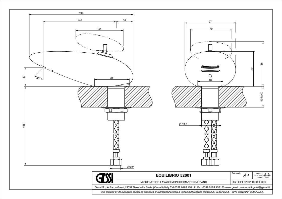 Смеситель для раковины Gessi Equilibrio 52001.030 Copper PVD