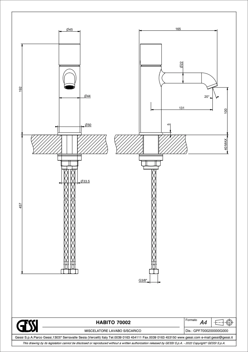 Смеситель для раковины Gessi Habito 70002.031 Chrome