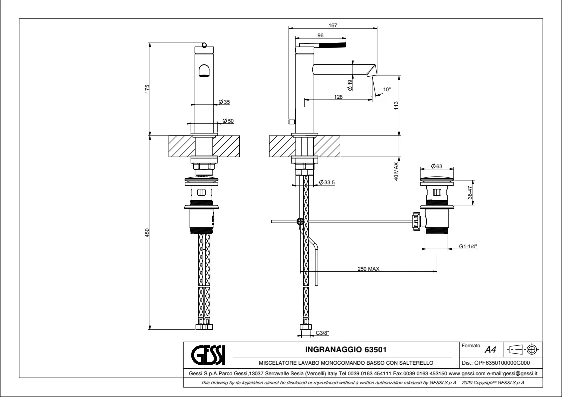 Смеситель однорычажный для раковины Gessi Ingranaggio 63501.031 выполнен в цвете хром, с донным клапаном.