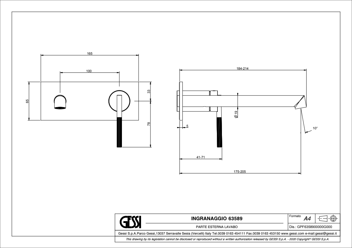 Смеситель для раковины Gessi Ingranaggio 63589.706 Black Metal PVD