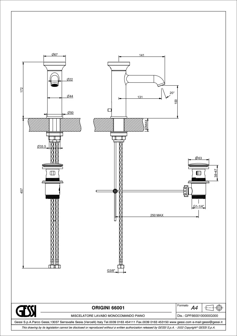 Смеситель для раковины Gessi Origini 66001.707 Black Metal Brushed PVD