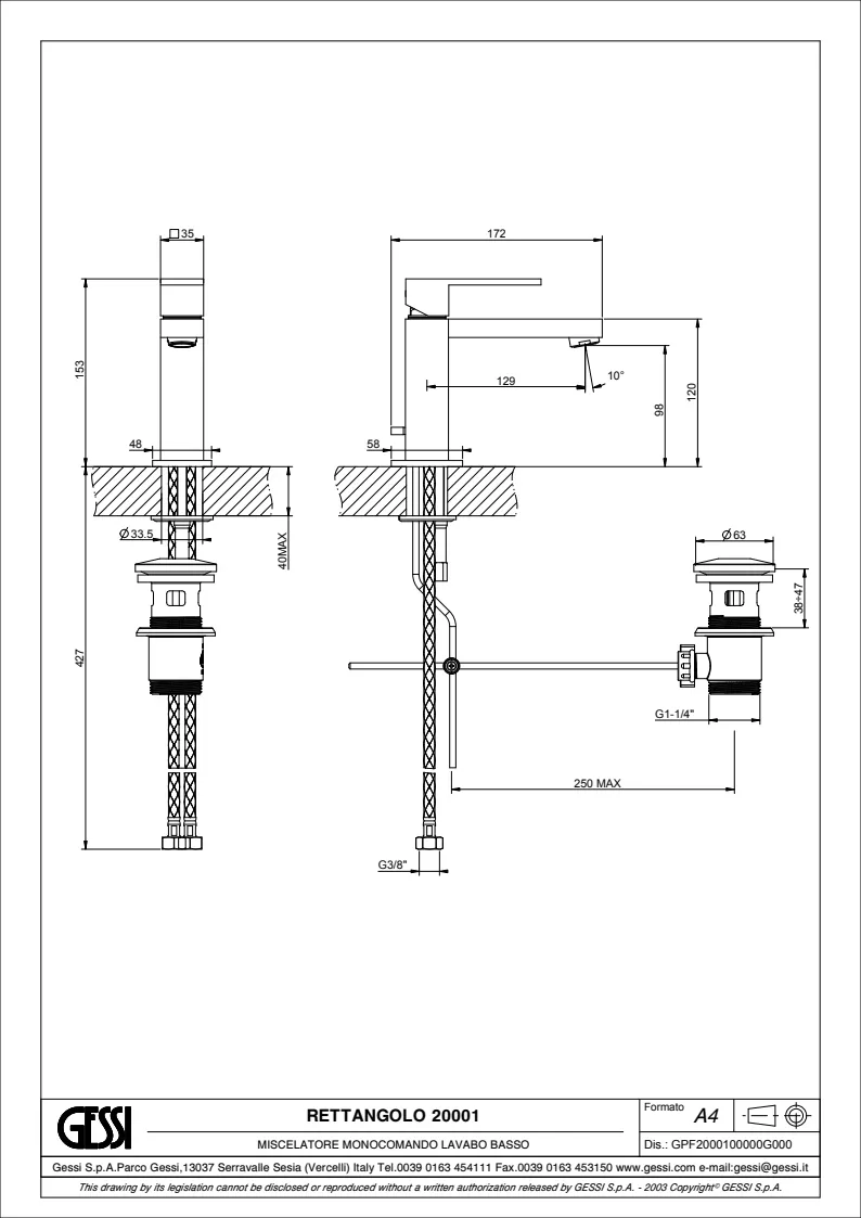 Смеситель однорычажный для раковины Gessi Rettangolo 20001.031 выполнен в цвете хром.