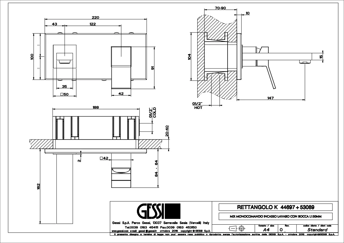 Смеситель для раковины Gessi Rettangolo K 53089.149 никель