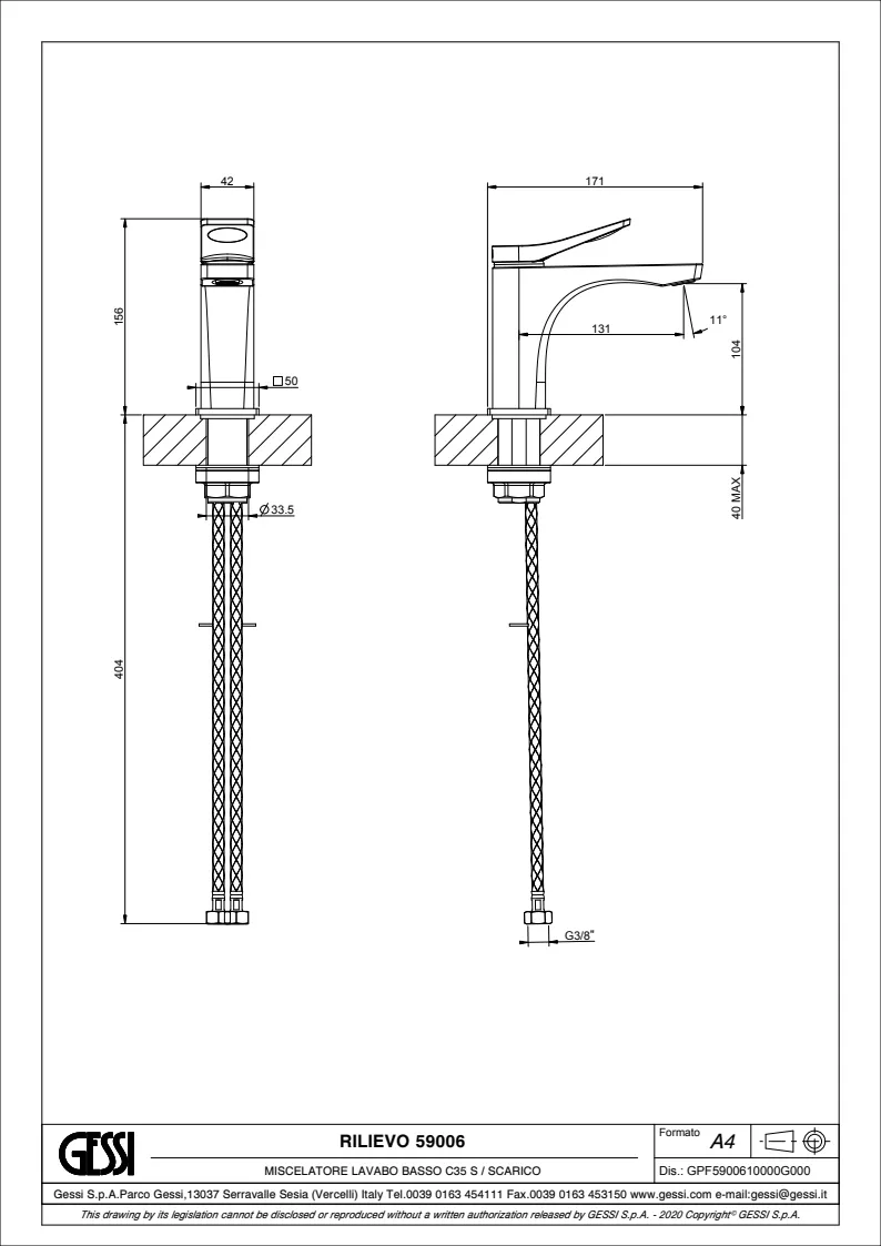 Смеситель однорычажный для раковины Gessi Rilievo 59006.031 выполнен в цвете хром.