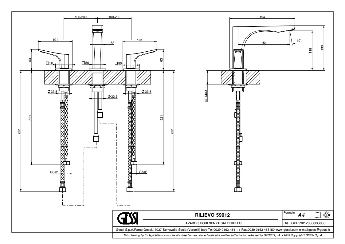 Смеситель двухрычажный для раковины на три отверстия Gessi Rilievo 59012.031 выполнен в цвете хром.