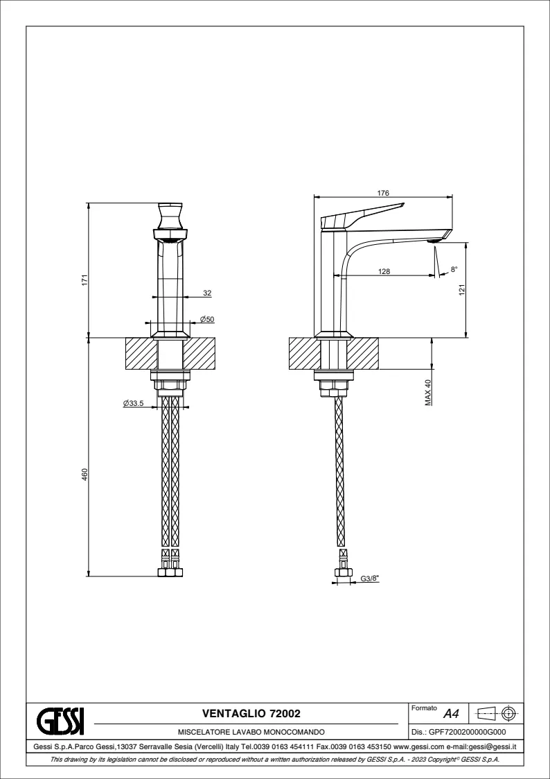 Смеситель для раковины Gessi Ventaglio 72002.726 Warm Bronze Brushed PVD
