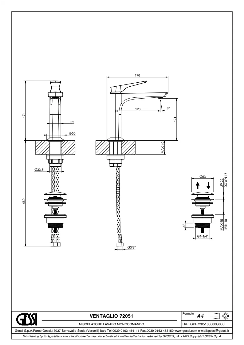 Смеситель для раковины Gessi Ventaglio 72051.031 Chrome