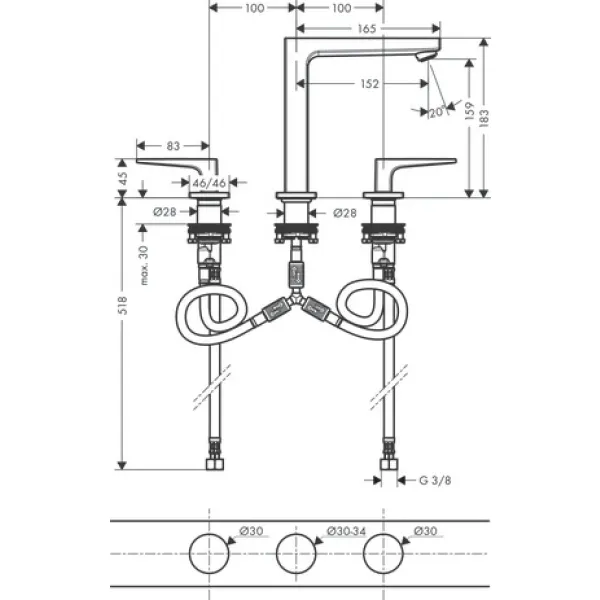 •состоит из: смеситель для раковины, на 3 отверстия, слив/перелив