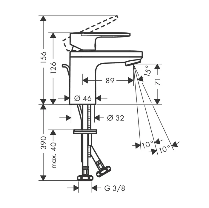 - состоит из: однорычажный смеситель для раковины, слив/перелив