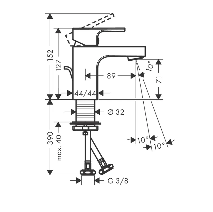 • состоит из: однорычажный смеситель для раковины, слив/перелив