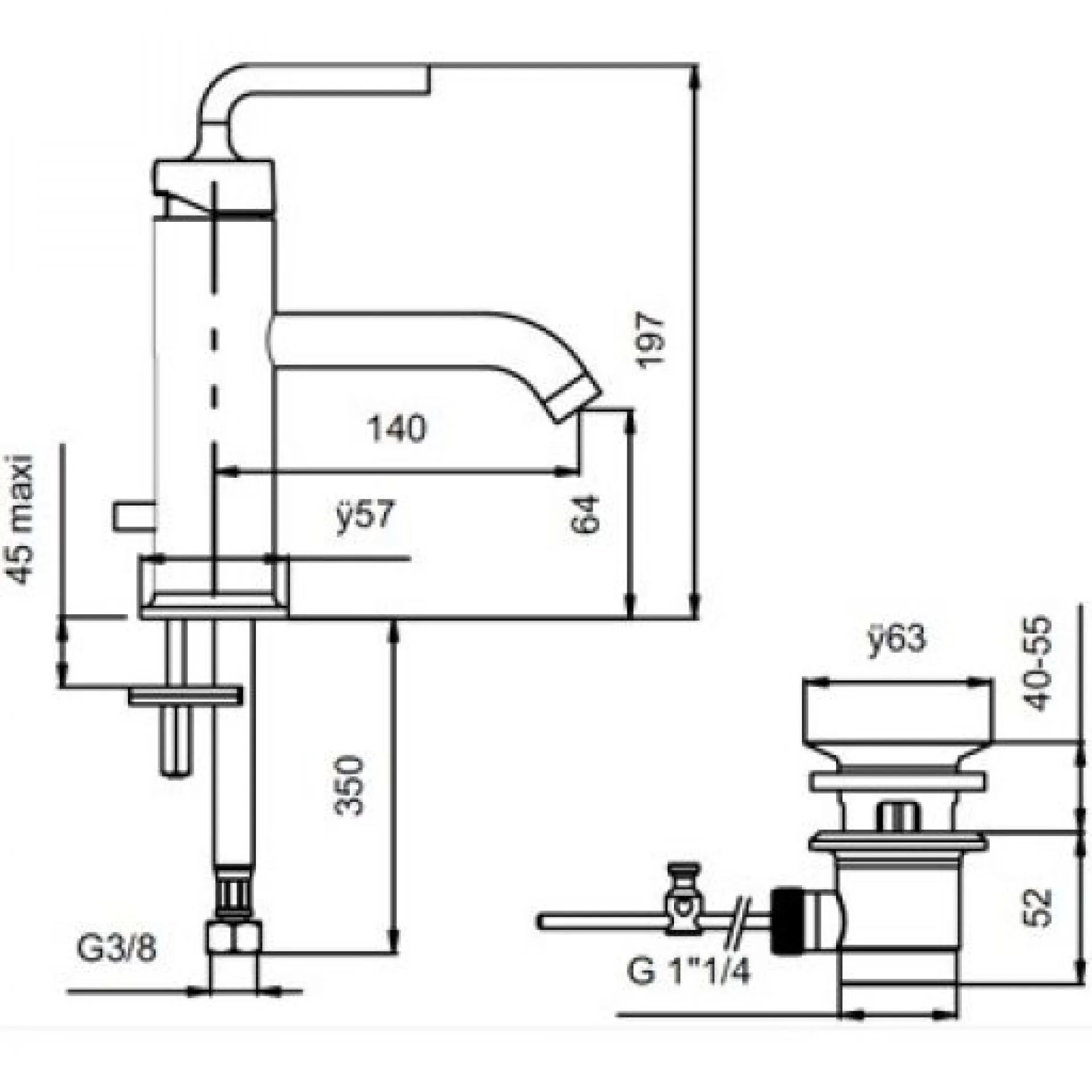 В комплекте поставки: смеситель, гибкая подводка, донный клапан.