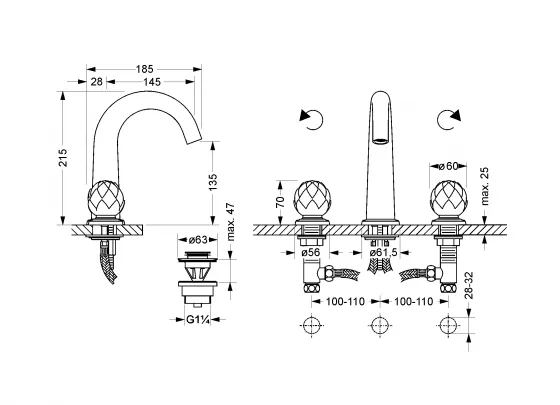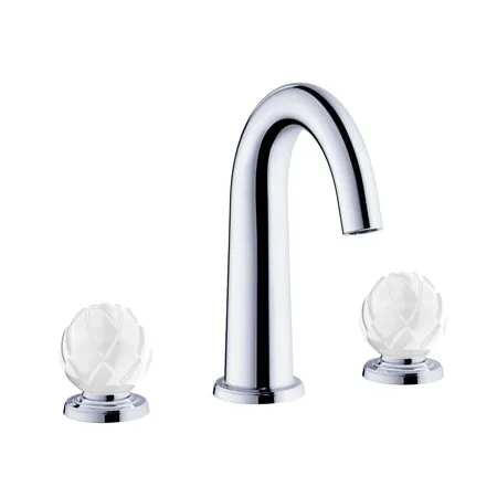 Дизайн смесителя предназначен для установки на три отверстия, что делает его универсальным решением для различных стилей ванных комнат. Черные ручки с элементами платины добавляют изысканности и подчеркивают уникальность дизайна, делая смеситель Jorger Belledor не только функциональным предметом быта, но и выразительным элементом декора.