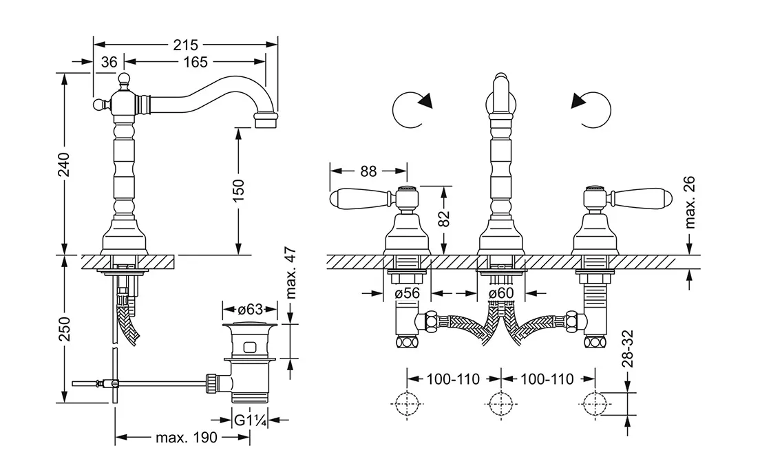 - вентили с керамическими кран-буксами ½“, запирание вправо и влево