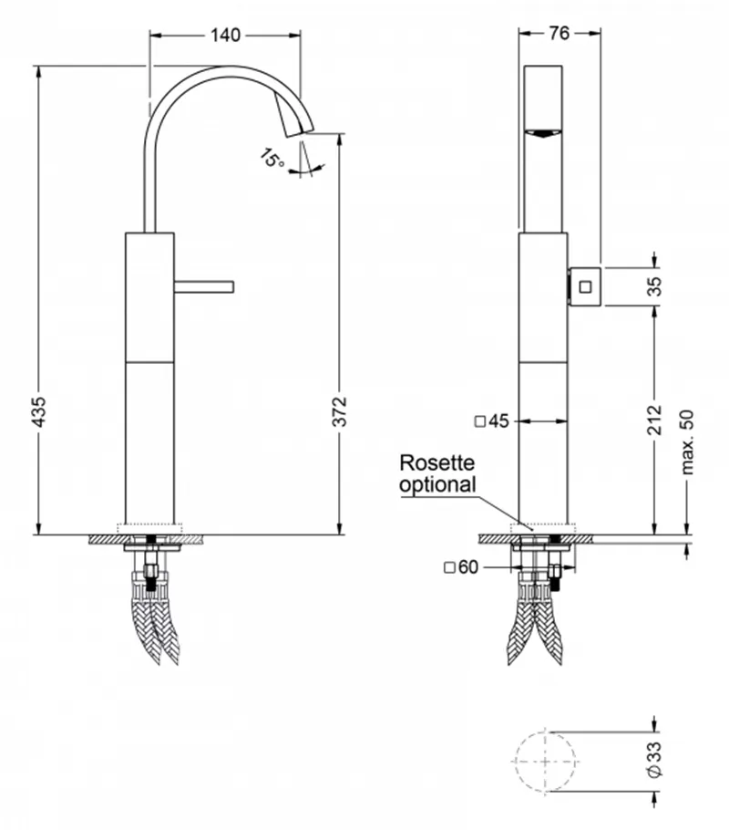 - общая высота 435 мм