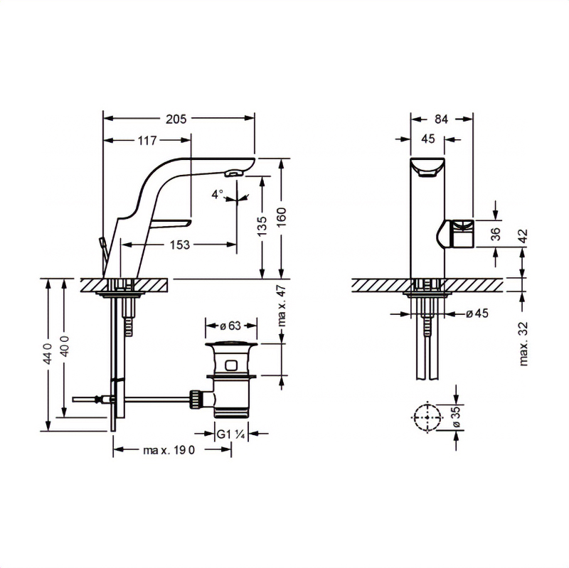 • вынос 153 мм