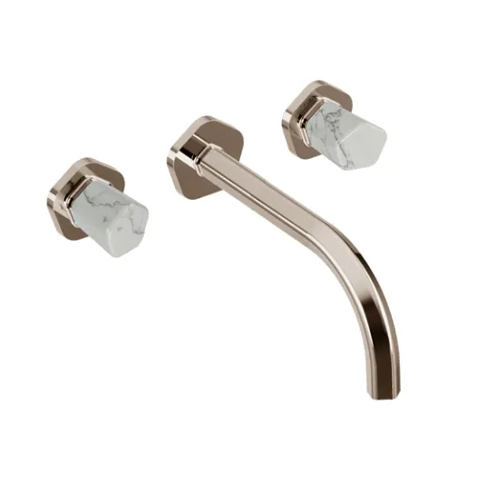 Цвет смесителя — серебряный никель, он добавляет модели элегантность и благородство. Такой цвет делает смеситель универсальным решением для множества стилей ванных комнат, от классических до современных. Особенным элементом дизайна являются две ручки, выполненные из белого камня. Эта цветовая комбинация придает смесителю уникальность и подчеркивает его эксклюзивность. Ручки не только красивы, но и функциональны, обеспечивая легкое и точное регулирование температуры и силы потока воды.