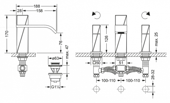 Смеситель для раковины JORGER TURN представляет собой изысканное сочетание стиля и функциональности. Его двухрычажное управление обеспечивает точную регулировку температуры и напора воды, что делает использование смесителя максимально удобным и интуитивно понятным. С выносом носика на 158 мм и общей высотой изделия в 170 мм, он обеспечивает удобный доступ к воде и подходит для различных типов раковин.