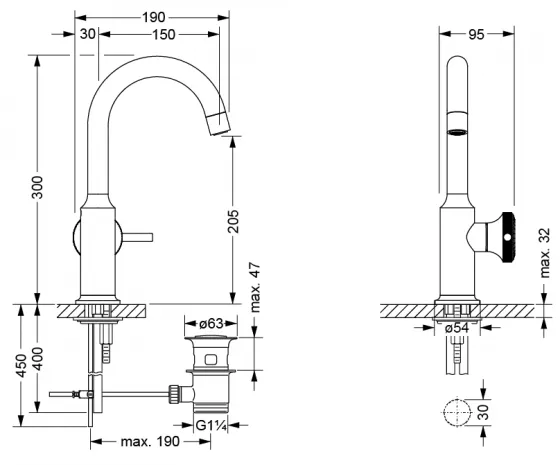 - вынос 150 мм