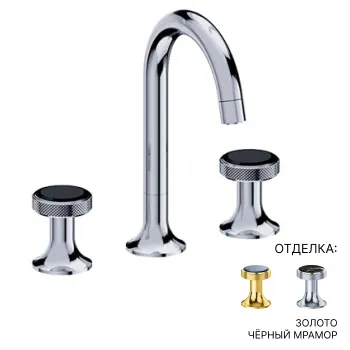 Смеситель для раковины на 3отв., вынос носика 150мм, высота 270мм, золото/черный мрамор