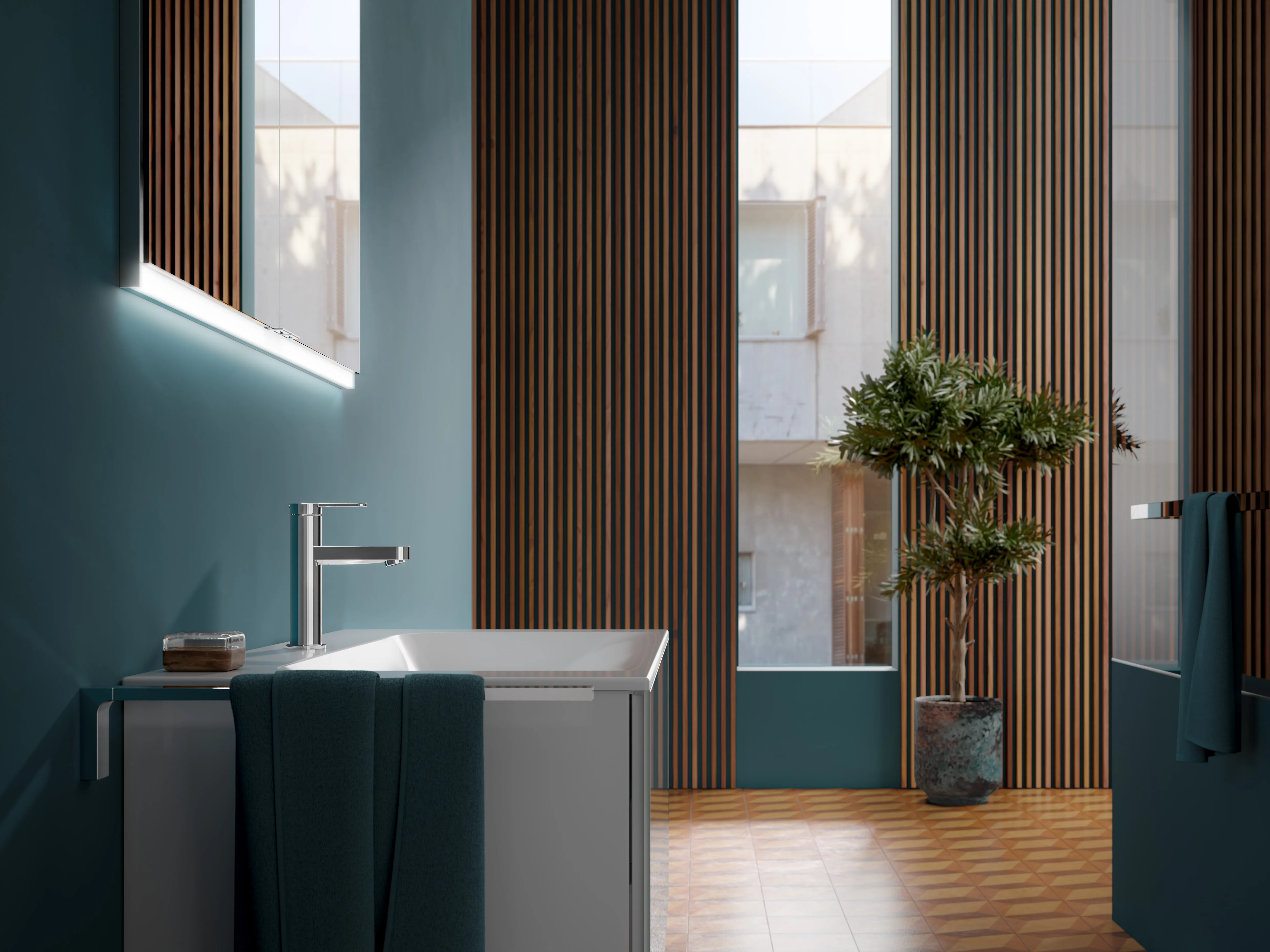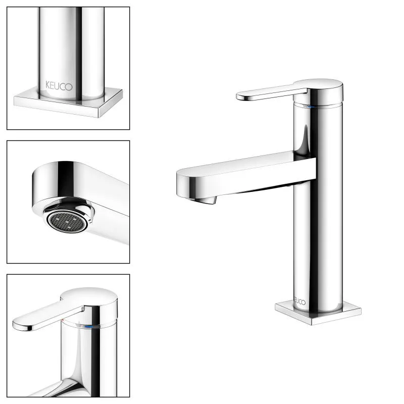 Смеситель для умывальника на одно отверстие 100, без гарнитуры Keuco IXMO FLAT, 59502013100, хром