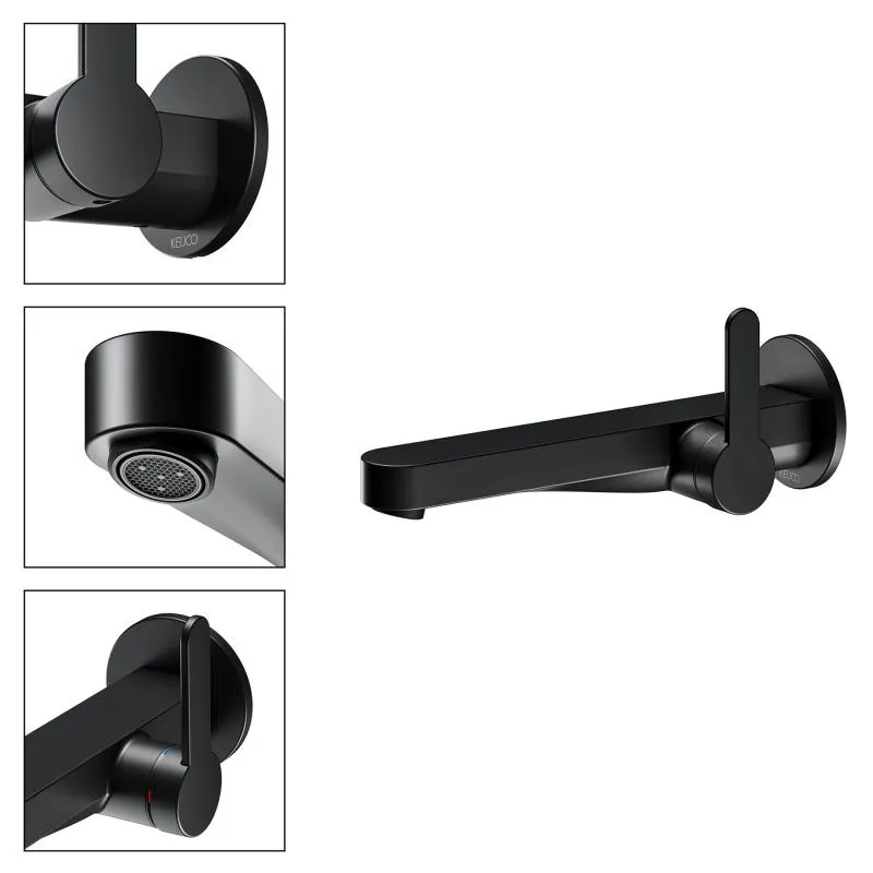 Однорычажный смеситель для умывальника 241 мм IXMO FLAT, 59516371301, черный матовый (RAL 9011)