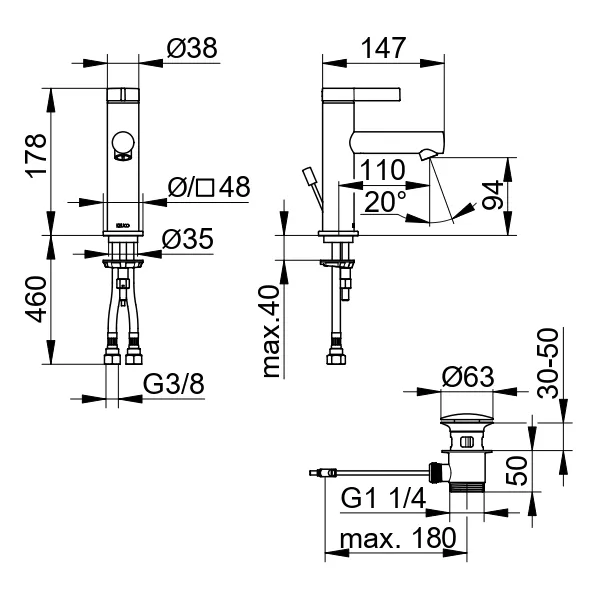 - Аэратор M 20x1, угол наклона +/- 6° регулируемый
