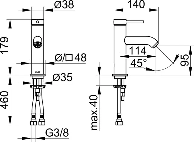 Смеситель для умывальника на одно отверстие 100, без гарнитуры Keuco IXMO SOFT, 59502372100, черный матовый (RAL 9011)