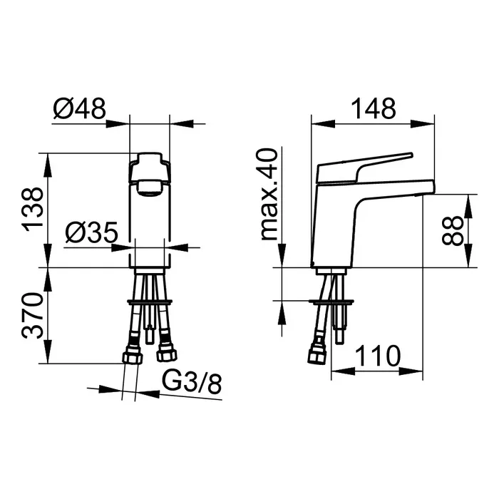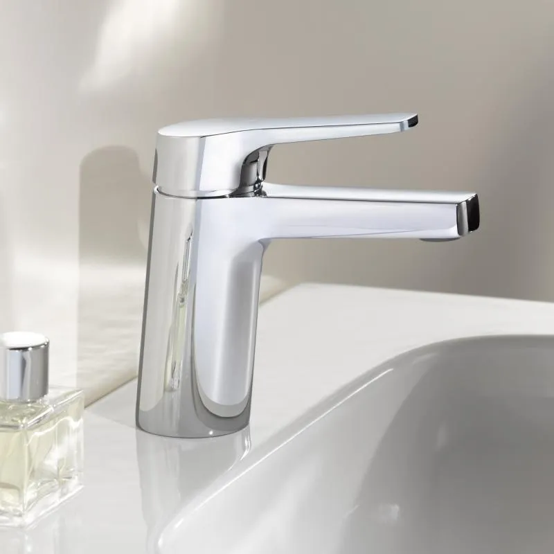 Без гарнитуры для слива и донного клапана, монтаж на одно отверстие с системой быстрого монтажа, керамический картридж, аэратор SLIM SSR M 24x1, угол наклона струи регулируется, гибкая подводка 435 мм G 3/8 дюйма. Поток воды ограничен 6 л/мин.