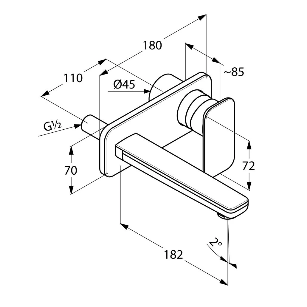 длина излива 180 мм