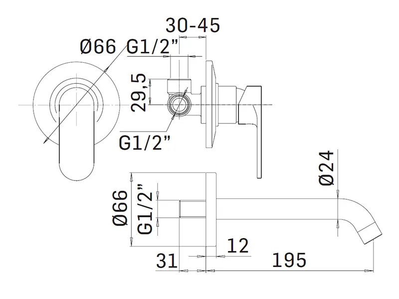 Встраиваемый смеситель для раковины из стены Mamoli SADLER 46070000602K, внутренняя часть в комплекте, цвет черный матовый.