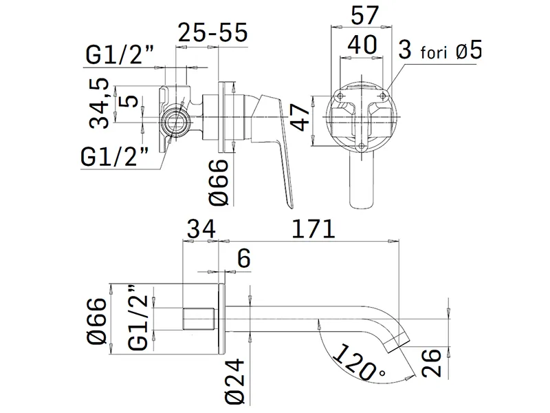 MAMOLI SPARTACO SPARTACO 4928 Смеситель для раковины однорычажный, встраиваемый, настенного монтажа в комплекте с внутренней частью. Цвет brushed inox (матовая сталь).