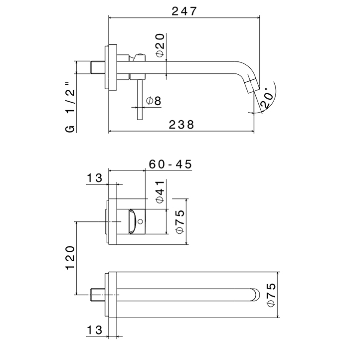 Смеситель для раковины настенный Newform Xt 4230E.21.018 хром