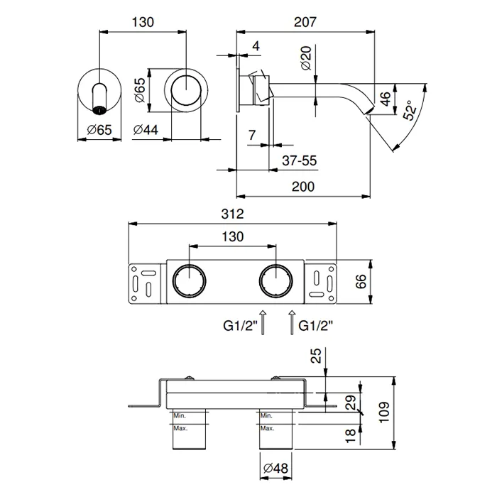 Смеситель для раковины настенный встраиваемый Fantini Aa/27 33 93 Y111B сталь