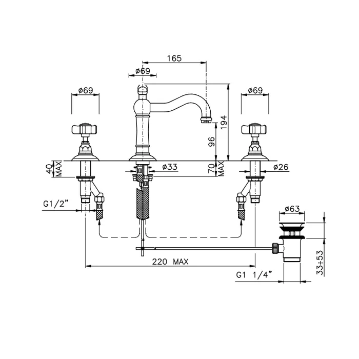 Nicolazzi 1409BZ18 Смеситель для раковины на 3 отв DAMES ANGLAISES