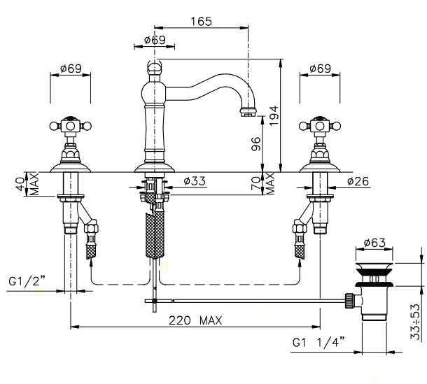 - Комплектующие: На 3 отверстия