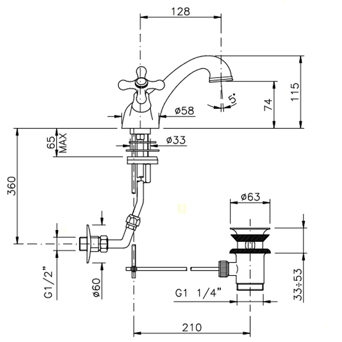 Смеситель для раковины Nicolazzi Nuova Brenta на 1 отв N.BRENTA 2532BZ