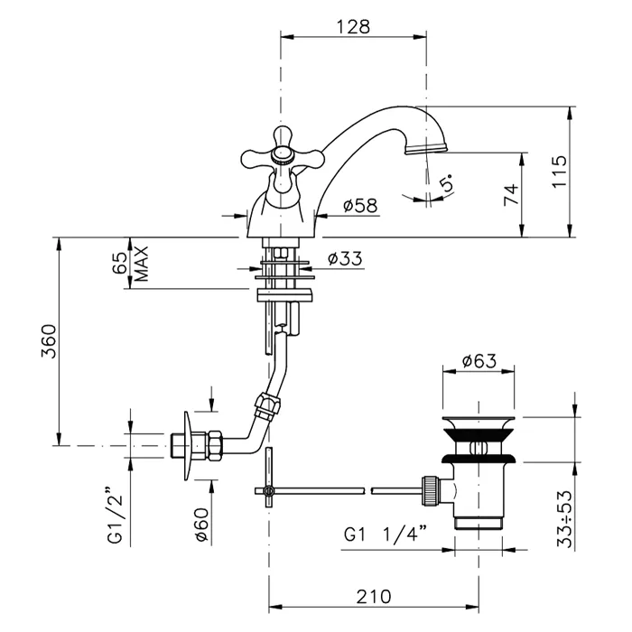 Смеситель для раковины Nicolazzi Nuova Brenta на 1 отв N.BRENTA 2532CR
