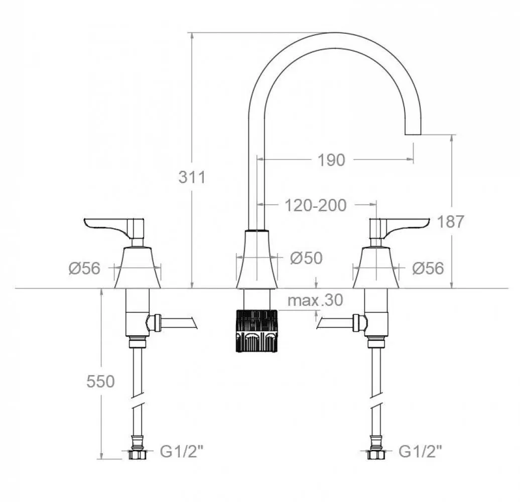Смеситель для раковины Ramonsoler Adagio на 3 отверстия графит 914202MLGR