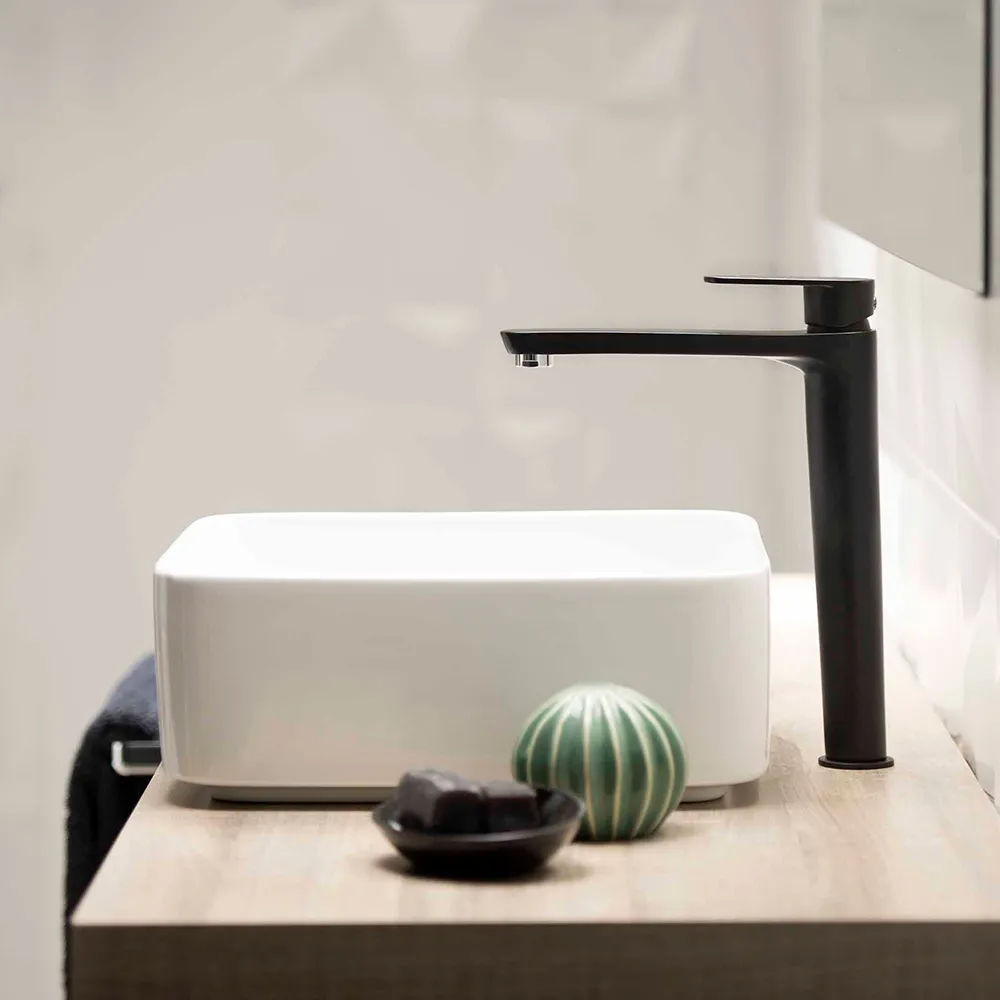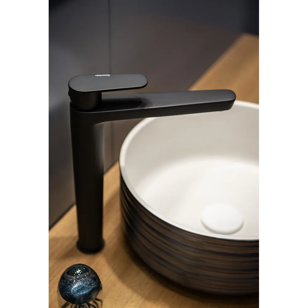 Дизайн модели Alexia универсален и подходит для разных стилистических решений, добавляя в интерьер элегантность и утончённость. Черное матовое покрытие защищает смеситель от коррозии и придаёт ему современный вид.