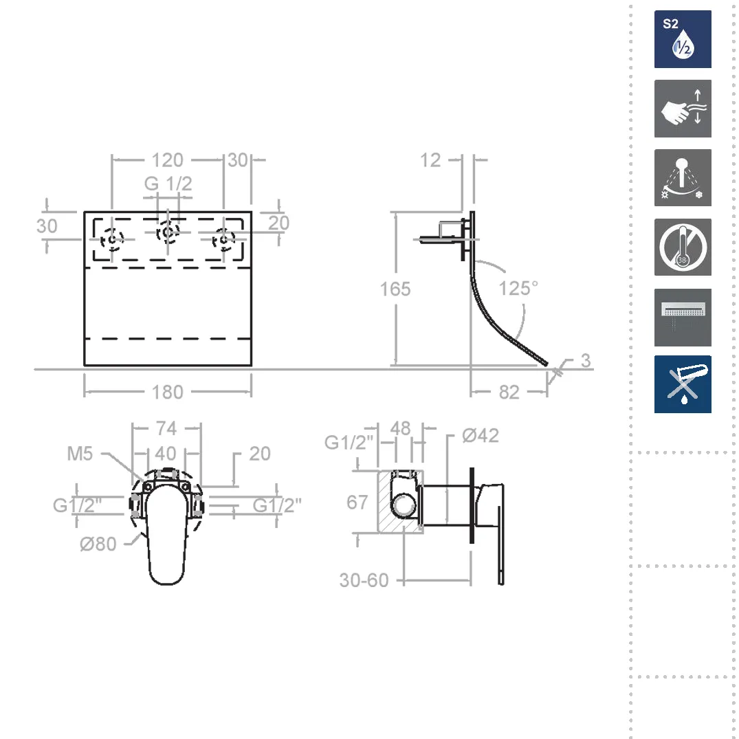 Еще одна важная характеристика — это система плавного регулирования температуры. Керамический картридж Ø35 мм обеспечивает точное и мягкое переключение температуры, а система Термостоп блокирует перегрев, защищая вас от нежелательно горячей воды.