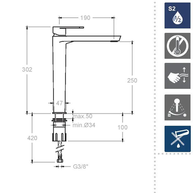 Смеситель Ramonsoler оснащен инновационной S2 системой двухступенчатого открытия воды, которая позволяет умело экономить ресурсы, снижая расход воды до 50%. При этом комфорт использования остается на высочайшем уровне благодаря уникальной системе аэрации, создающей плотный и насыщенный поток воды даже при малом напоре. Разработанный с заботой о потребителе, он обеспечит вам незаметную, но ощутимую экономию.