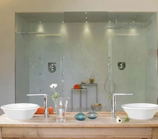 • HOTBLOCK — система, предотвращающая подачу слишком горячей воды при резком падении давления холодной воды (например, когда кто-то включил холодную воду в другом кране или произошёл слив). Эта система защищает от ожогов.