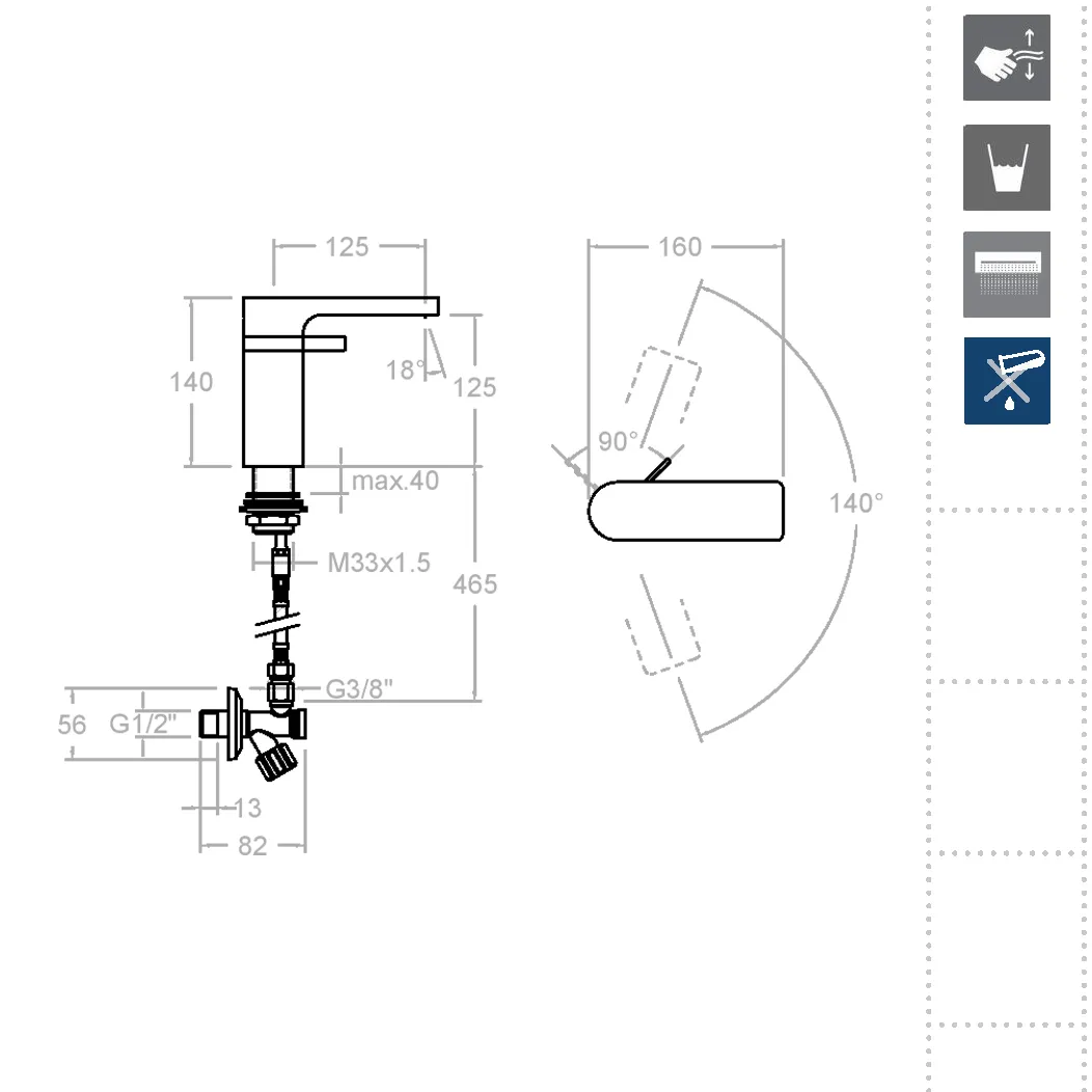 - Высота в 140 мм и поворотный излив на 140° делают модель подходящей для различных требований пользователя.
