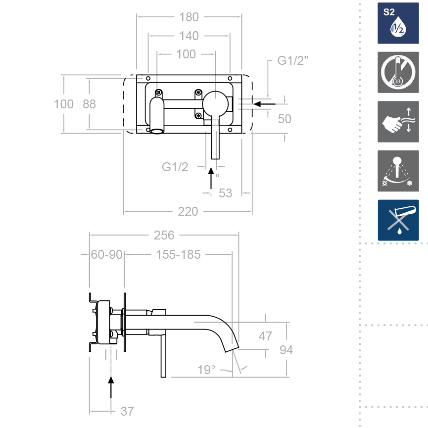 - Благодаря системе S2 двуступенчатого открытия воды, вам удастся существенно снизить расход до 50%, не жертвуя комфортом. Первая ступень позволяет легко настроить экономичный поток, вторая обеспечит полный напор при необходимости.