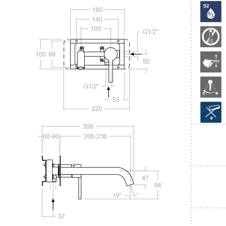 - Система двухступенчатого открытия воды S2: снижает расход воды до 50%, сохраняя комфорт использования. Переключение между двумя положениями открытия – легкость и плавность для вас.
