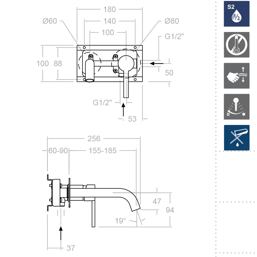 Этот смеситель также поставляется с встраиваемым блоком и круглыми отражателями, что облегчает установку и обеспечивает безупречный вид вашей ванной комнаты. Благодаря длине излива 185 мм, Ramonsoler Drako 332102 идеально подходит для большинства стандартных раковин.