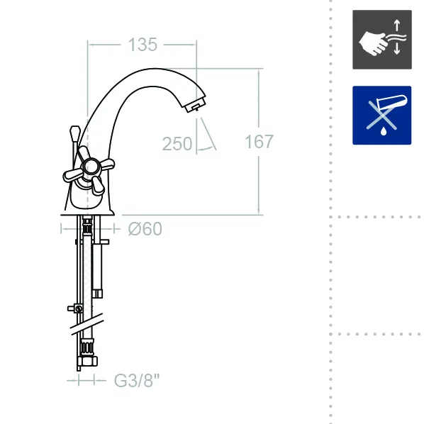 Смеситель для раковины Ramonsoler Gaudi 3101C — это изысканное воплощение классического стиля, идеально подходящее для установки в ванной комнате любого дизайна, особенно если вы любите винтажные элементы. Этот продукт от бренда Ramonsoler из коллекции Gaudi сочетает в себе гармонию и стиль, акцентируя внимание на вечных традициях и современных технических решениях.