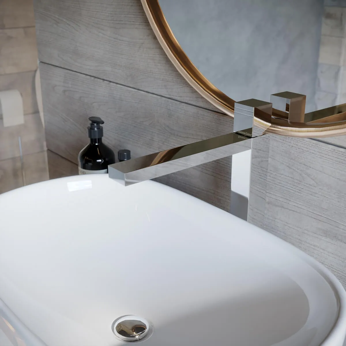 Смеситель Ramonsoler Kuatro 4710N оснащён керамическим картриджем диаметром 25 мм, что гарантирует плавность регулировки температуры воды. Это делает его превосходным выбором как для классического, так и для современного дизайна ванной. При высоте 280 мм и длине излива 215 мм, этот смеситель идеально подходит для использования с накладными раковинами. Он обеспечивает расход воды до 12 литров в минуту при давлении в 3 бара, и при этом уровень звука не превышает 20 дБ — практически бесшумная работа!